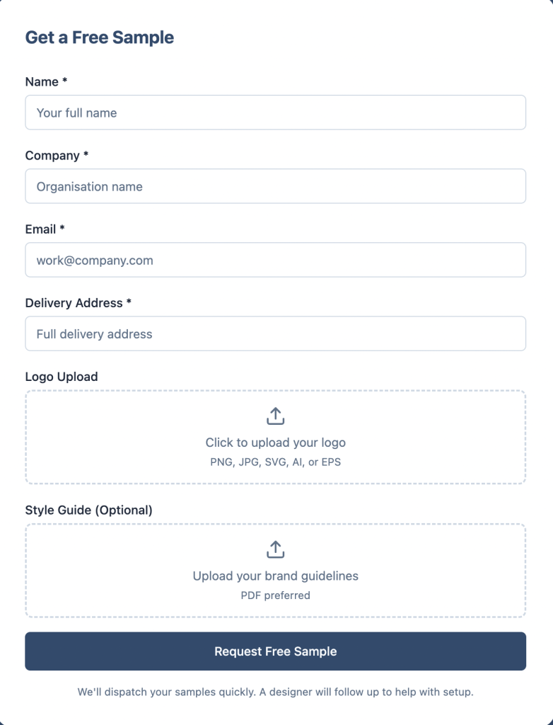 Upload your logo and we’ll create a real sample badge for you to see and feel. Style guides optional.